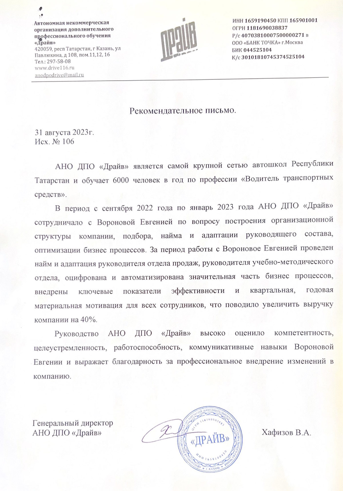 Приобретен навык эволюционного лидера, который вдохновляет команду, партнеров на реализацию видения будущего